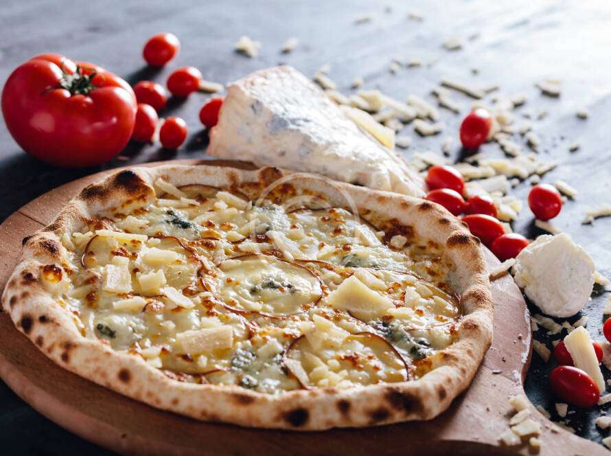 Italian pizza with cheese and pear